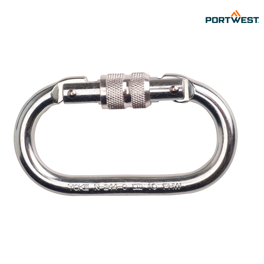 Jekleni ovalni karabin z varovalom, dolžina: 106 mm, odpiranje: 19 mm. Prelomna obremenitev: 25 kN.