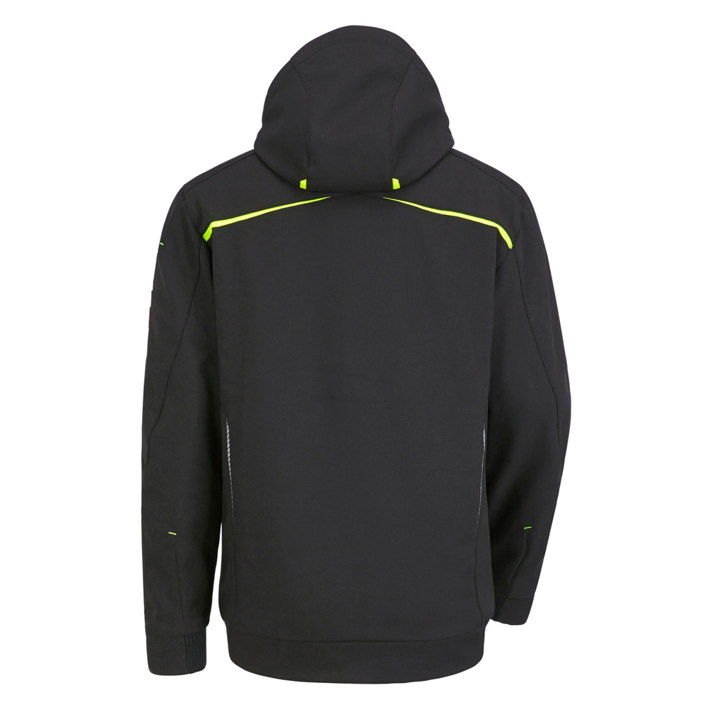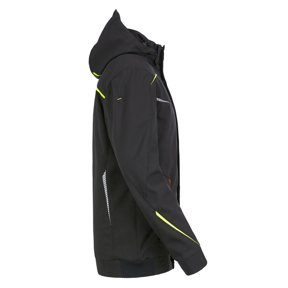 Snemljiva kapuca s prilagodljivo velikostjo zagotavlja dodatno zaščito pred vremenskimi vplivi, obroba in rokavi pa so opremljeni z elastičnimi pletenimi vstavki za boljše prileganje. Odsevni detajli povečajo vidnost, kar zagotavlja večjo varnost pri delu v slabi svetlobi.