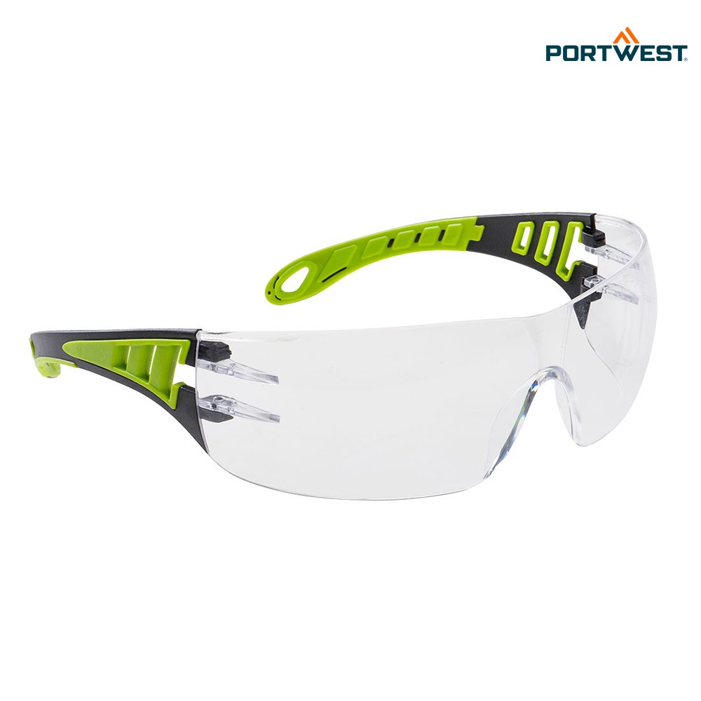 Inovativna lahka dielektrična zaščitna očala, z brezkovinskimi spoji, ki vključujejo trpežno in sodobno zasnovo, z dvojnim materialom na ročajih. Stranske odprtine zagotavljajo povečano prezračevanje za optimalno udobje.